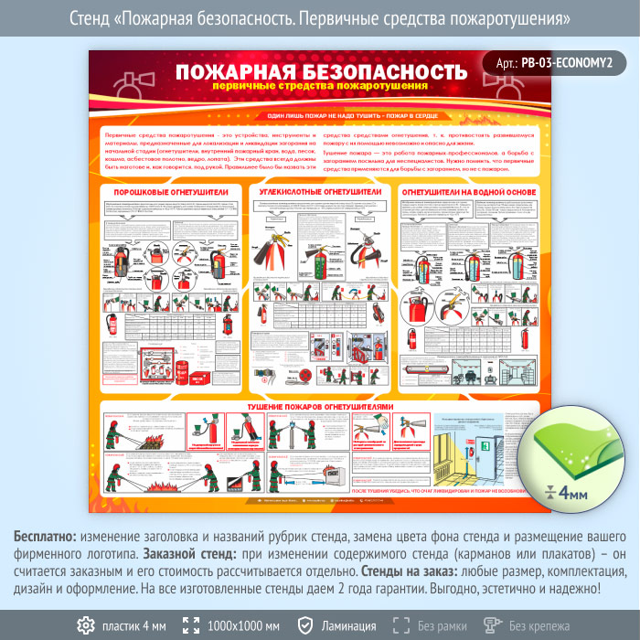 Стенд «Пожарная безопасность. Первичные средства пожаротушения» (PB-03-ECONOMY2) в Химках купить