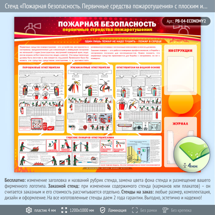 Стенд «Пожарная безопасность. Первичные средства пожаротушения» с плоским и объемным карманами (PB-04-ECONOMY2) в Химках купить