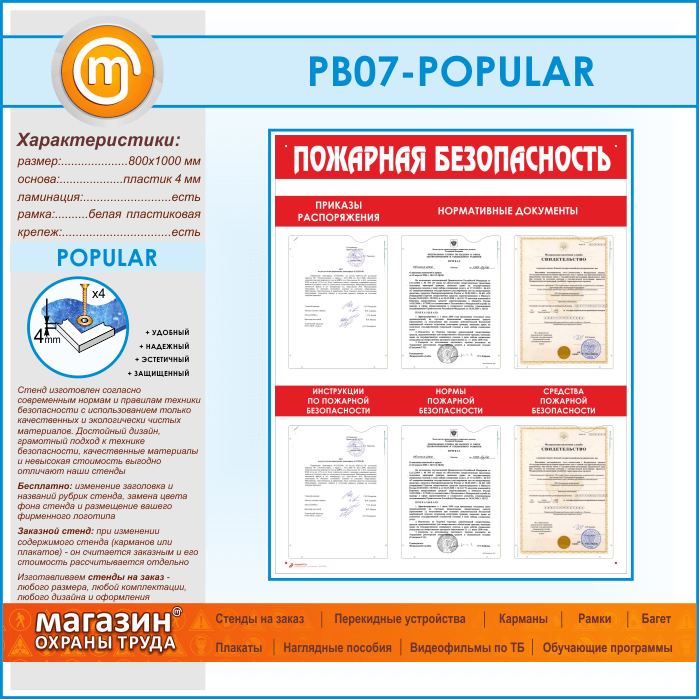 Стенд «Пожарная безопасность» с 6 карманами (PB-07-POPULAR) в Химках купить