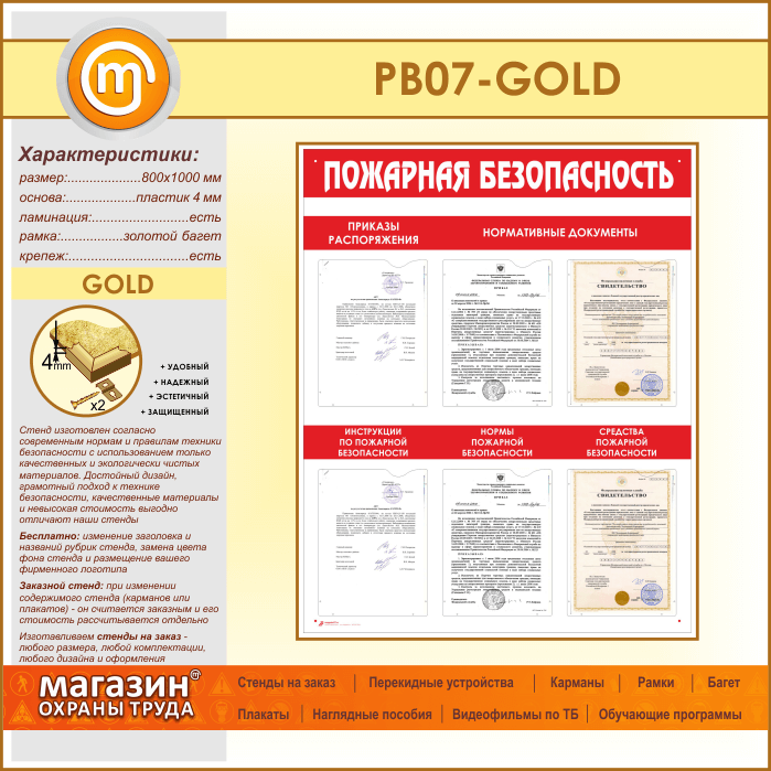 Стенд «Пожарная безопасность» с 6 карманами (PB-07-GOLD) в Химках купить