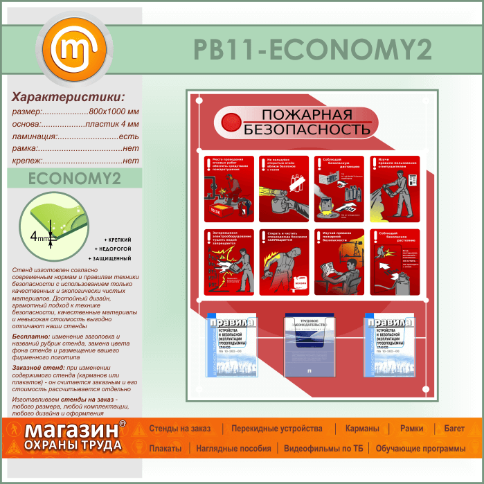 Стенд «Стенд пожарная безопасность в строительстве» с 3 объемными карманами (PB-11-ECONOMY2) в Химках купить