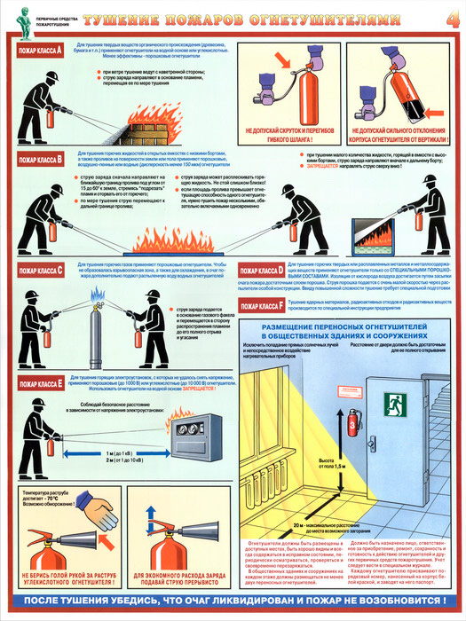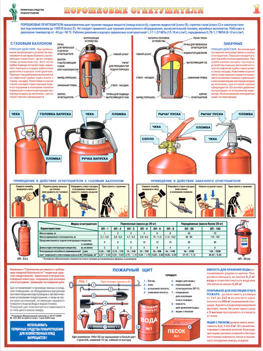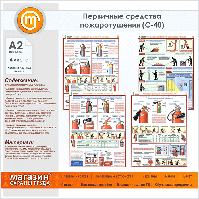 Плакаты «Первичные средства пожаротушения» (С-40, ламинированная бумага, А2, 4 листа) в Химках купить
