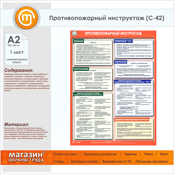 Плакат «Противопожарный инструктаж» (С-42, ламинированная бумага, А2, 1 лист) в Химках купить