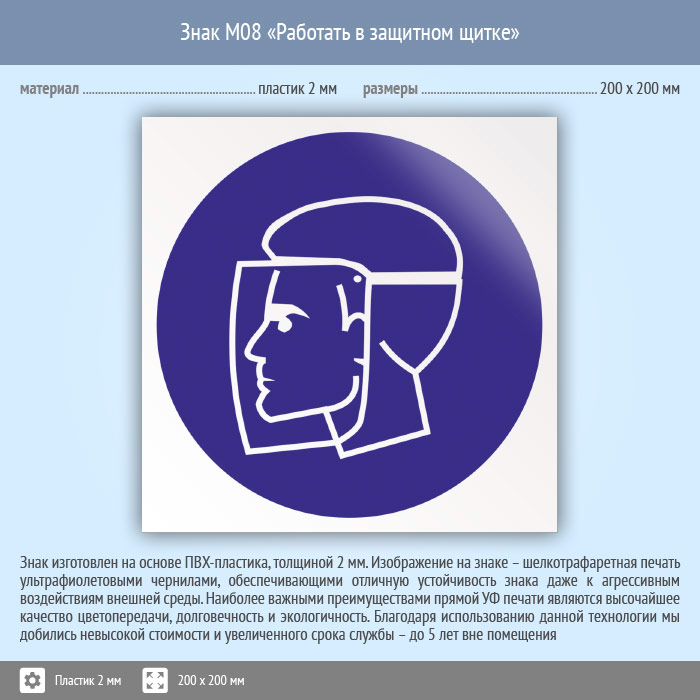 Знак M08 «Работать в защитном щитке» (пластик, 200х200 мм) в Химках купить