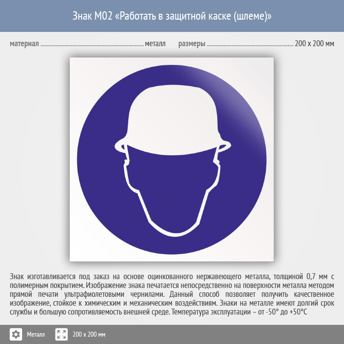 Знак M02 «Работать в защитной каске (шлеме)» (металл, 200х200 мм) в Химках купить