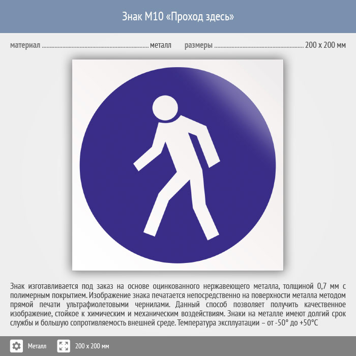 Знак M10 «Проход здесь» (металл, 200х200 мм) в Химках купить