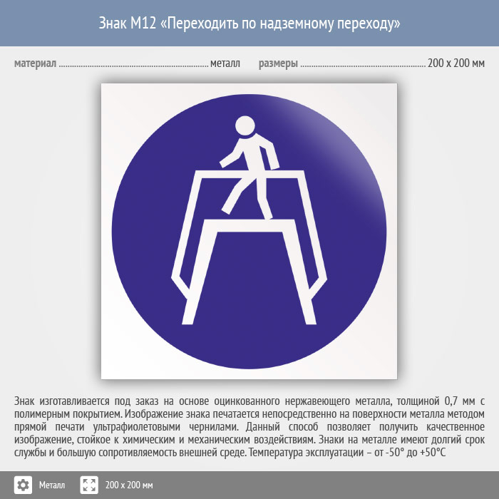 Знак M12 «Переходить по надземному переходу» (металл, 200х200 мм) в Химках купить