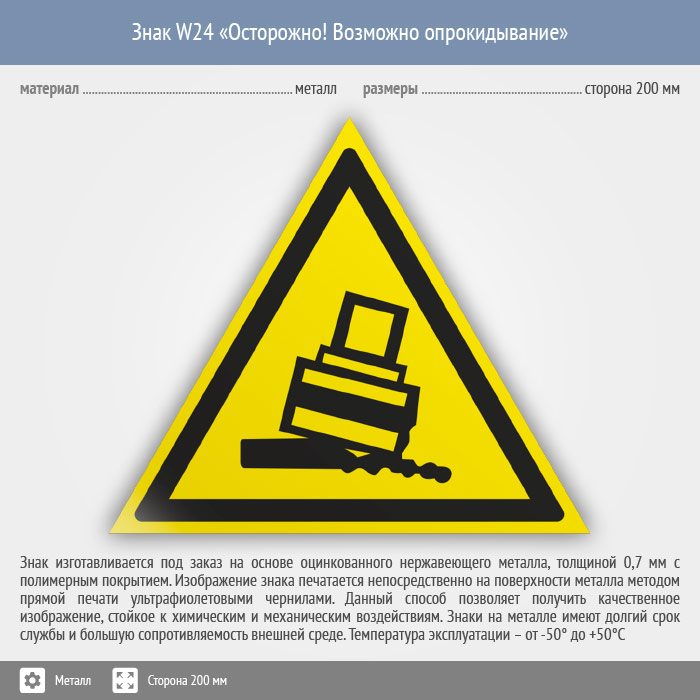Знак W24 «Осторожно! возможно опрокидывание» (металл, сторона 200 мм) в Химках купить