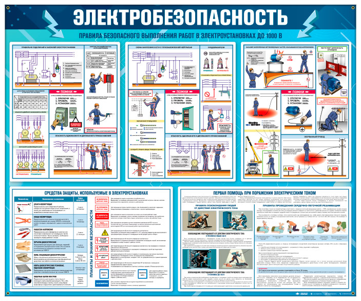 - Правила безопасного выполнения работ в электроустановках до 1000 В (3 плаката)