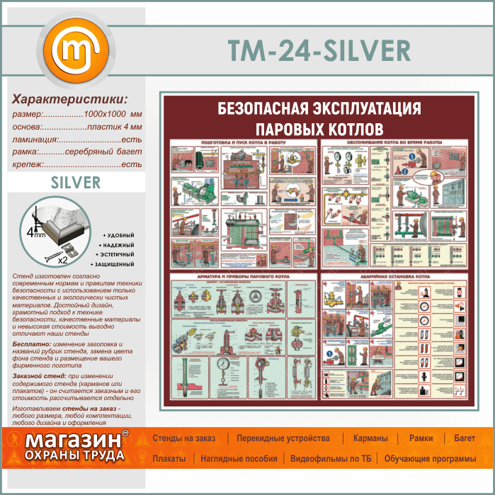Стенд «Безопасная эксплуатация паровых котлов» (TM-24-SILVER) в Химках купить