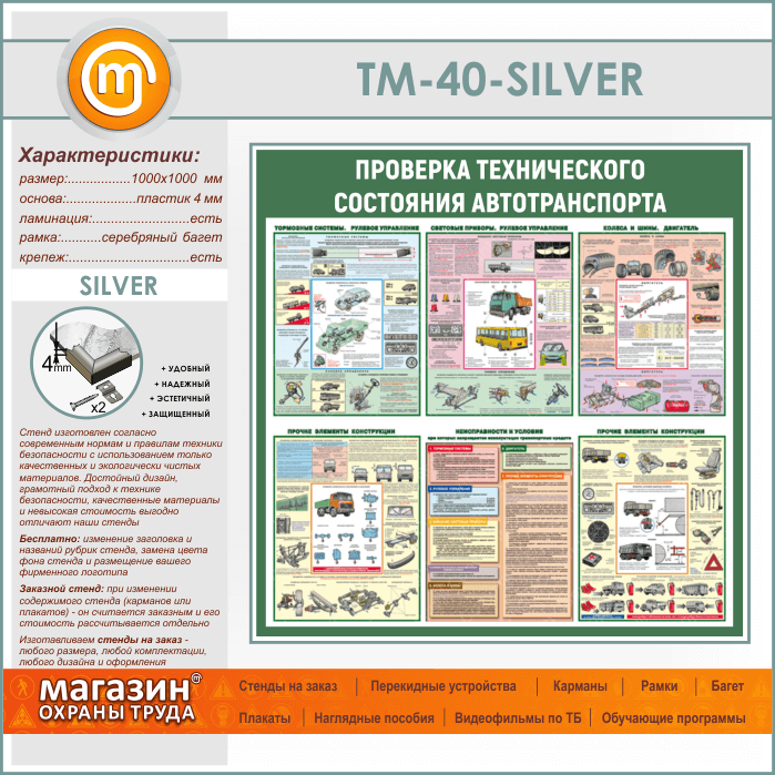 Стенд «Проверка технического состояния автотранспорта» (TM-40-SILVER) в Химках купить