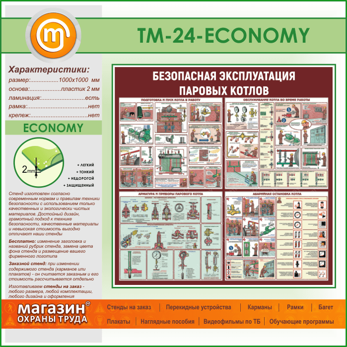 Стенд «Безопасная эксплуатация паровых котлов» (TM-24-ECONOMY) в Химках купить