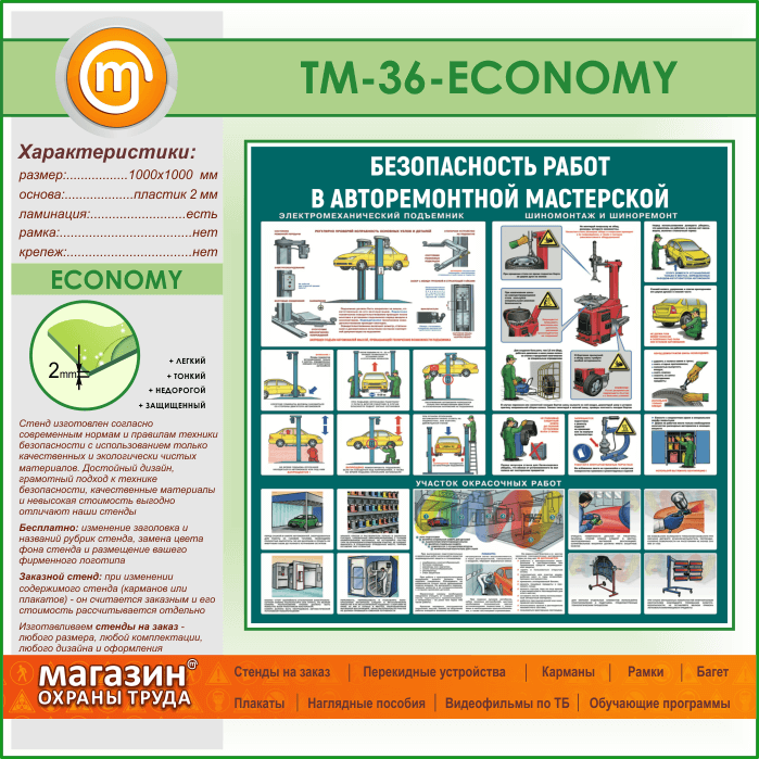 Стенд «Безопасность работ в авторемонтной мастерской» (TM-36-ECONOMY) в Химках купить