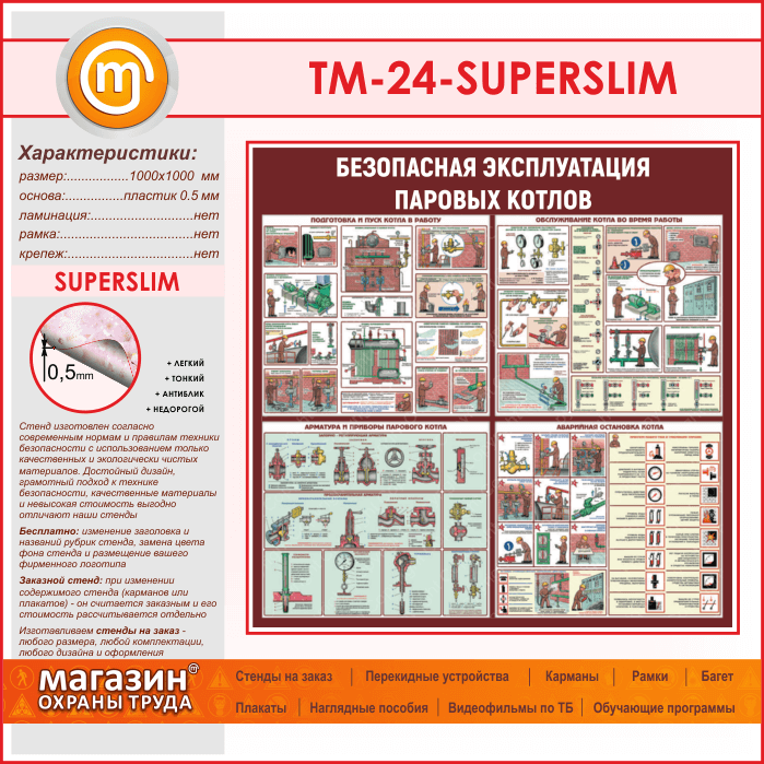 Стенд «Безопасная эксплуатация паровых котлов» (TM-24-SUPERSLIM) в Химках купить