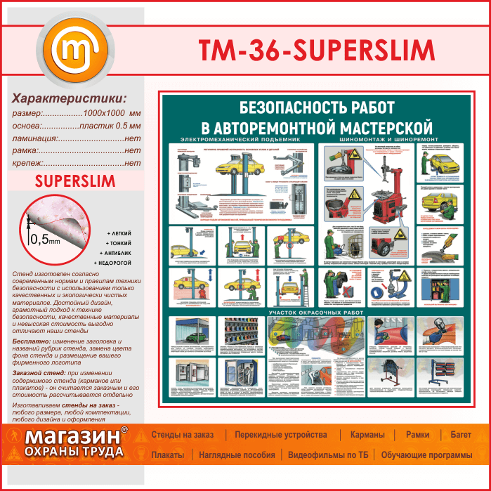 Стенд «Безопасность работ в авторемонтной мастерской» (TM-36-SUPERSLIM) в Химках купить