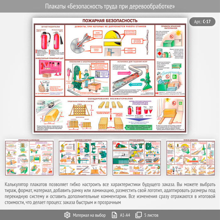 Плакаты «Безопасность труда при деревообработке» (С-17, 5 листов) в Химках купить