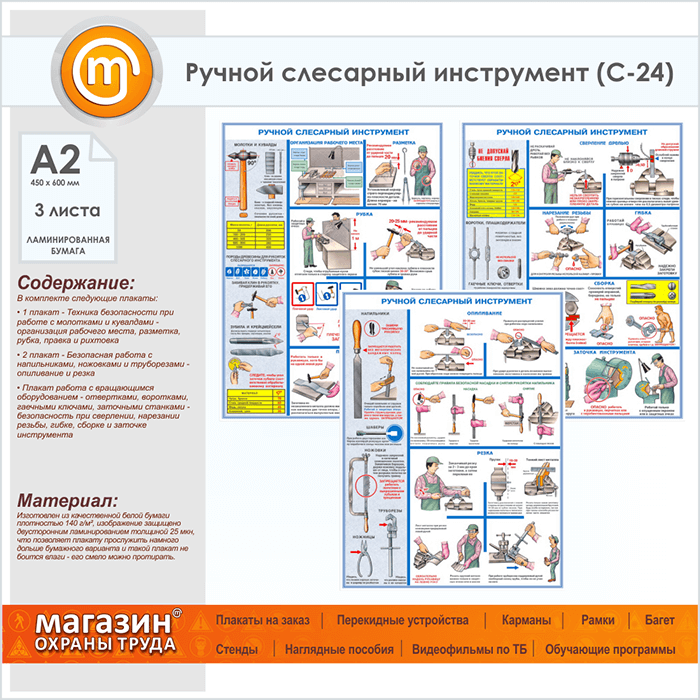 Плакаты «Ручной слесарный инструмент» (С-24, ламинированная бумага, А2, 3 листа) в Химках купить