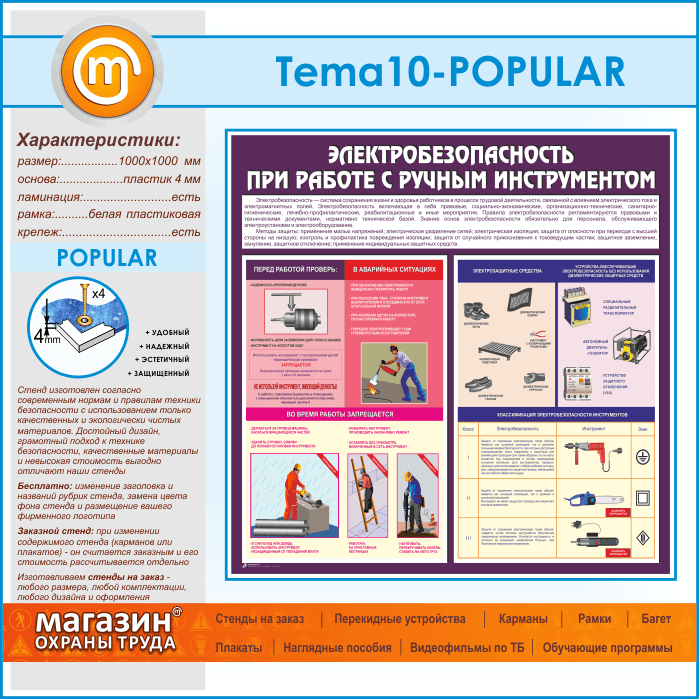 Стенд «Электробезопасность при работе с ручным инструментом» (TM-10-POPULAR) в Химках купить