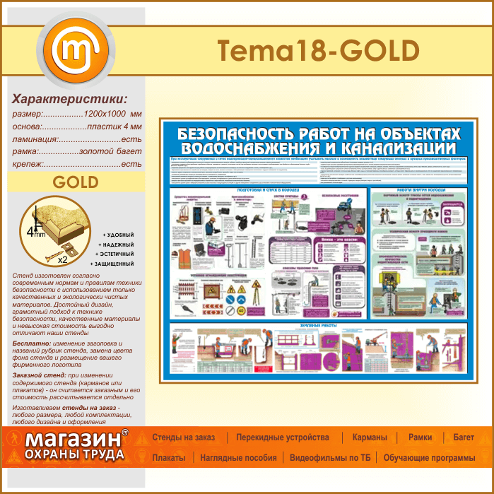 Стенд «Безопасность работ на объектах водоснабжения и канализации» (TM-18-GOLD) в Химках купить