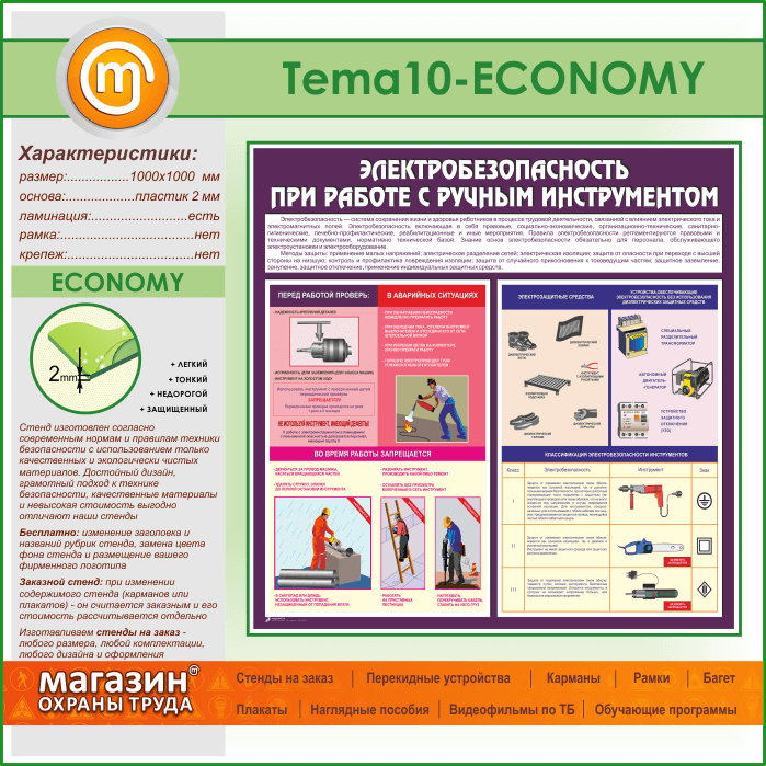 Стенд «Электробезопасность при работе с ручным инструментом» (TM-10-ECONOMY) в Химках купить