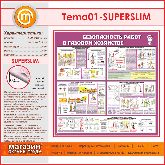 Стенд «Безопасность работ в газовом хозяйстве» (TM-01-SUPERSLIM) в Химках купить
