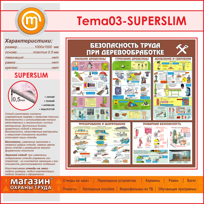 Стенд «Безопасность труда при деревообработке» (TM-03-SUPERSLIM) в Химках купить
