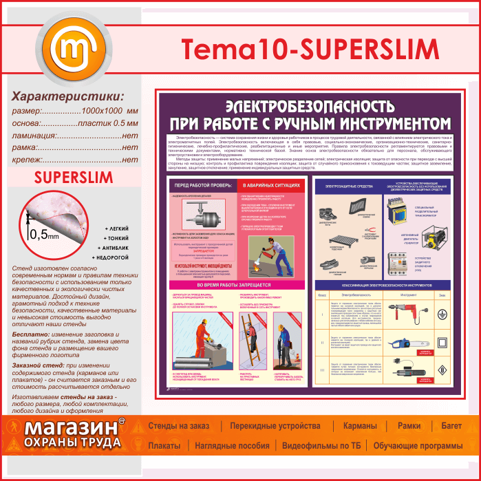 Стенд «Электробезопасность при работе с ручным инструментом» (TM-10-SUPERSLIM) в Химках купить