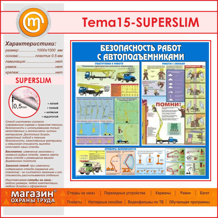 Стенд «Безопасность работ с автоподъемниками» (TM-15-SUPERSLIM) в Химках купить