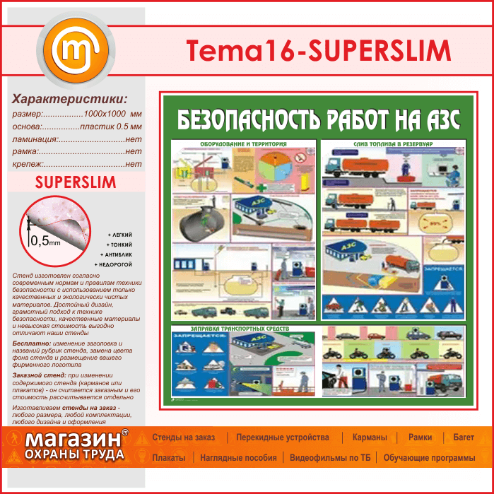 Стенд «Безопасность работ на автозаправочных станциях» (TM-16-SUPERSLIM) в Химках купить