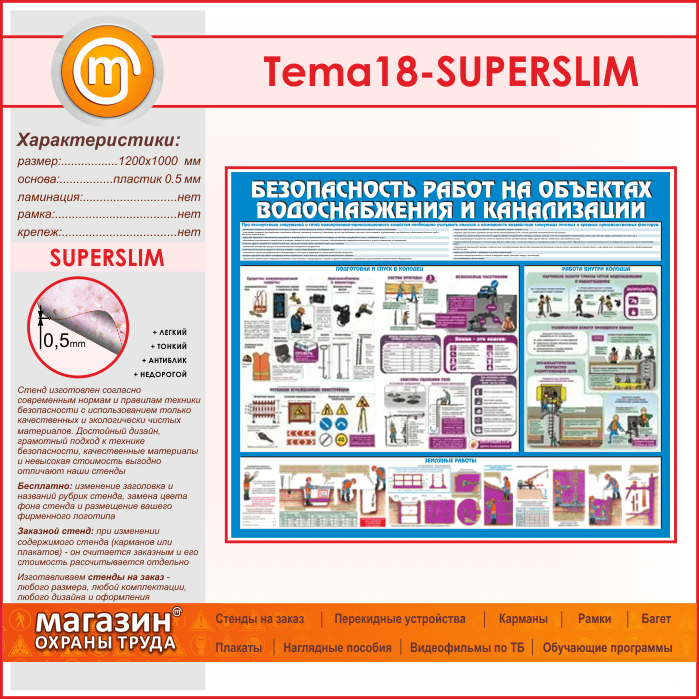 Стенд «Безопасность работ на объектах водоснабжения и канализации» (TM-18-SUPERSLIM) в Химках купить