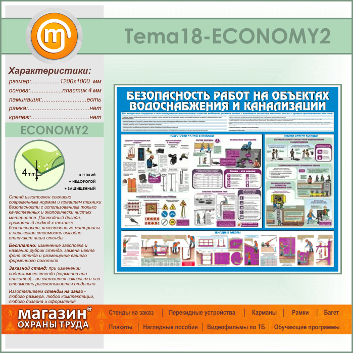 Стенд «Безопасность работ на объектах водоснабжения и канализации» (TM-18-ECONOMY2) в Химках купить