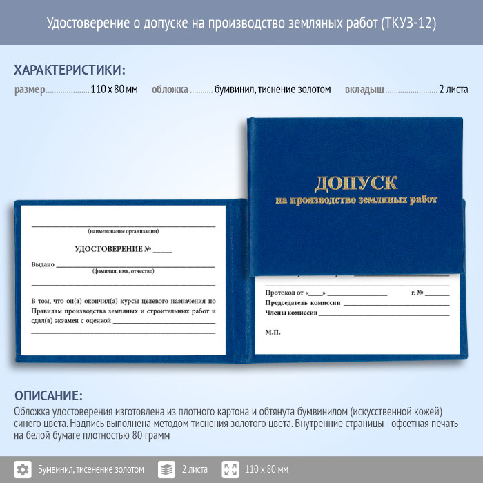Бланк удостоверения о допуске на производство земляных работ (ТКУЗ-12) в Химках купить