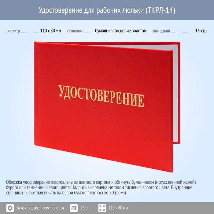 Бланк удостоверения для рабочих люльки (ТКРЛ-14) в Химках купить
