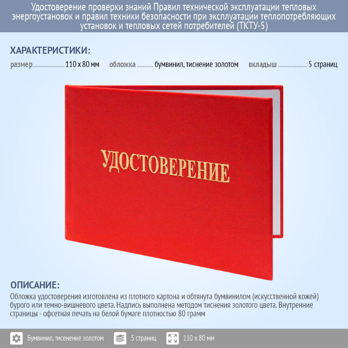 Бланк удостоверения проверки знаний Правил технической эксплуатации тепловых энергоустановок и правил техники безопасности при эксплуатации теплопотребляющих установок и тепловых сетей потребителей (ТКТУ-5) в Химках купить