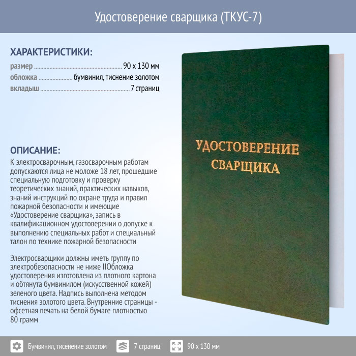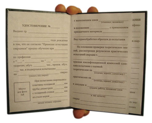 Бланк удостоверения сварщика (ТКУС-7) в Химках купить