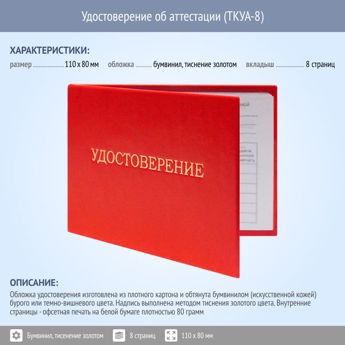 Бланк удостоверения об аттестации (ТКУА-8) в Химках купить
