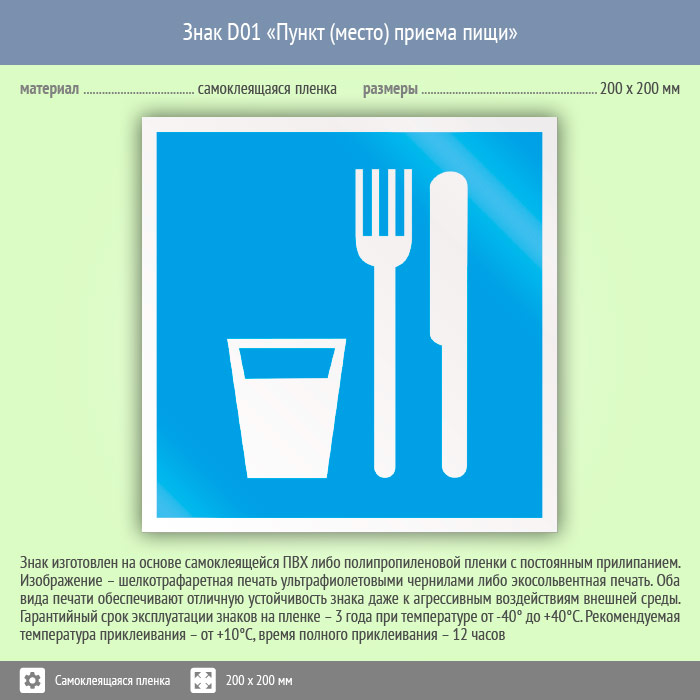 Знак D01 «Пункт (место) приема пищи» (пленка, 200х200 мм) в Химках купить