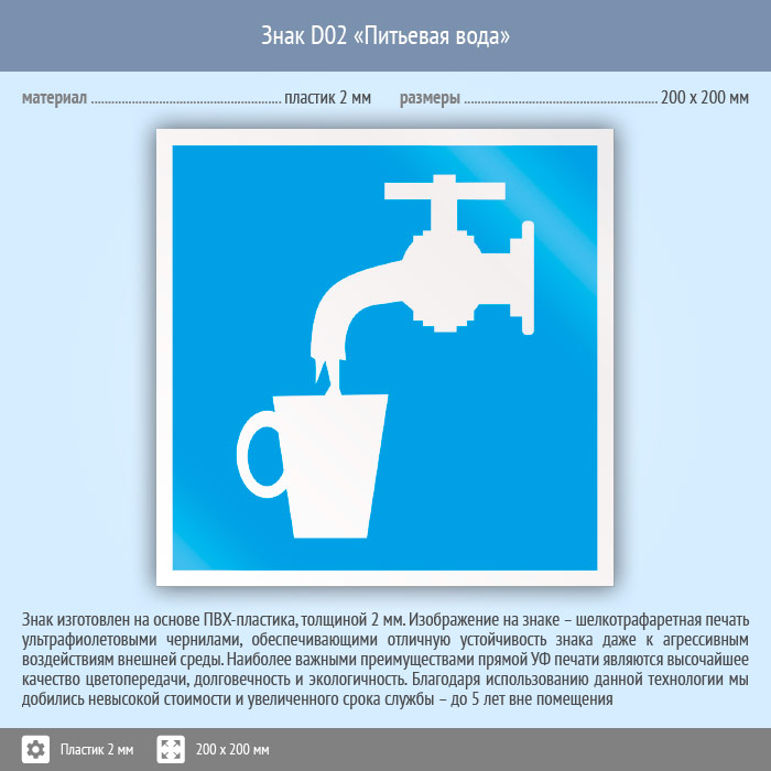 Знак D02 «Питьевая вода» (пластик, 200х200 мм) в Химках купить
