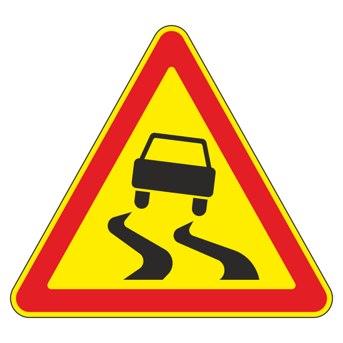 Дорожный знак 1.15 «Скользкая дорога» (временный) (металл 0,8 мм, I типоразмер: сторона 700 мм, С/О пленка: тип А коммерческая) в Химках купить