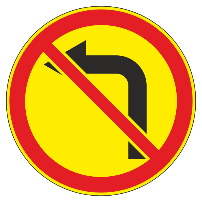 Дорожный знак 3.18.2 «Поворот налево запрещен» (временный) (металл 0,8 мм, I типоразмер: диаметр 600 мм, С/О пленка: тип А инженерная) в Химках купить