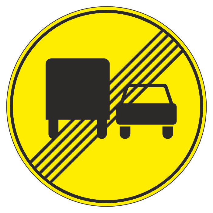 Дорожный знак 3.23 «Конец зоны запрещения обгона грузовым автомобилям» (временный) (металл 0,8 мм, III типоразмер: диаметр 900 мм, С/О пленка: тип А коммерческая) в Химках купить