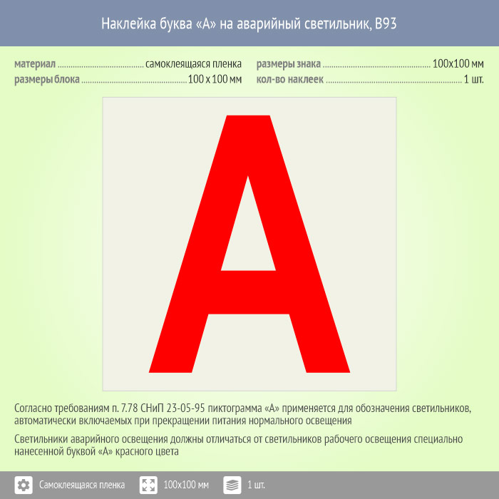Наклейка буква «А» на аварийный светильник, B93 (пленка, 100х100 мм) в Химках купить