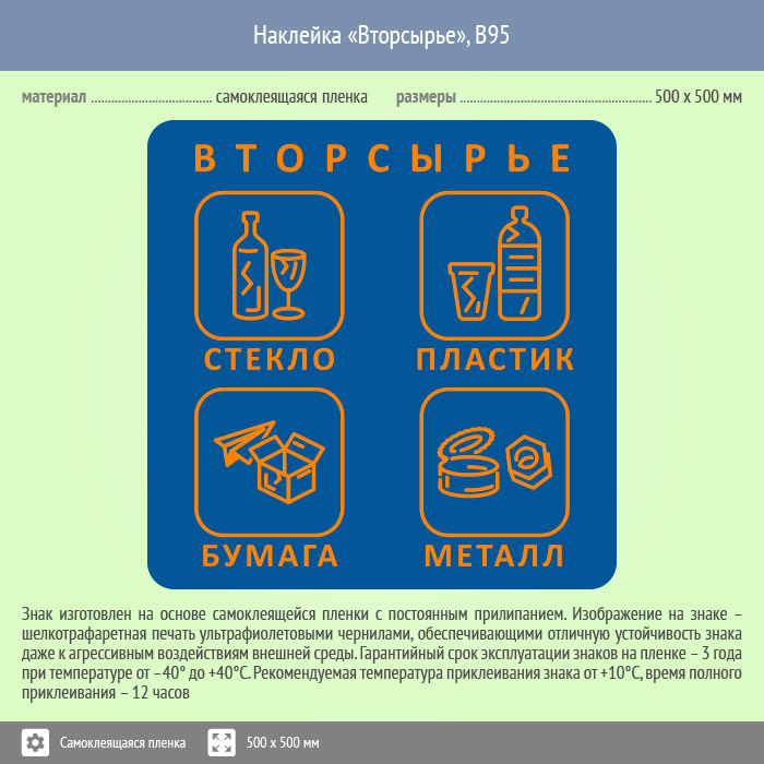 Наклейка на бак «Вторсырьё», B95 (пленка, 500х500 мм) в Химках купить