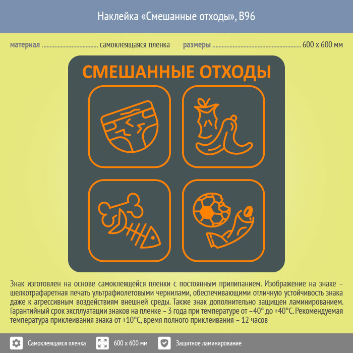 Наклейка на бак «Смешанные отходы», B96 (пленка c ламинированием, 600х600 мм) в Химках купить