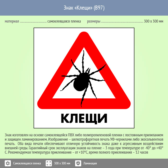 Знак «Клещи», B97 (пленка c ламинированием, 200х200 мм) в Химках купить