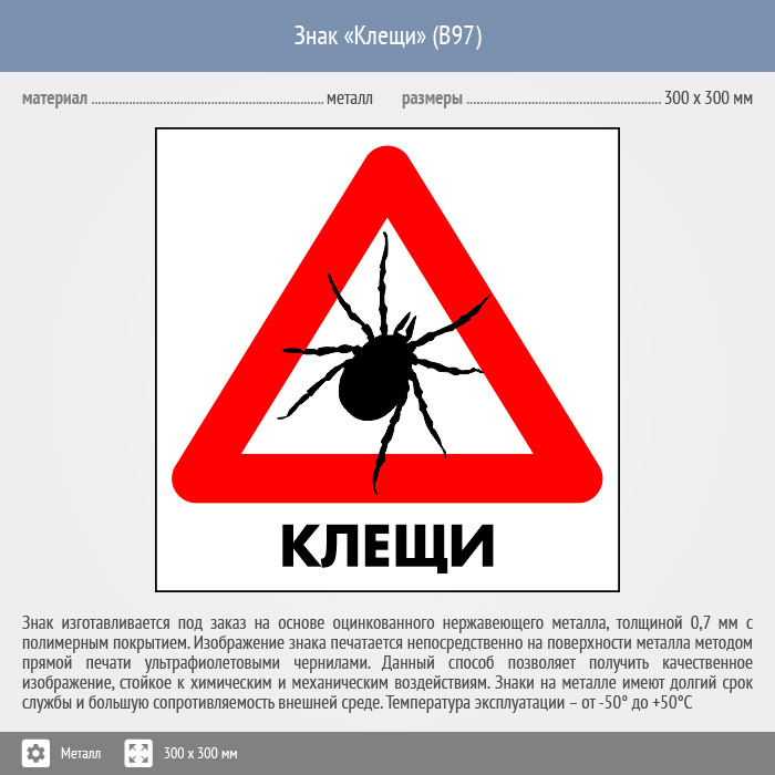Знак «Клещи», B97 (металл, 200х200 мм) в Химках купить