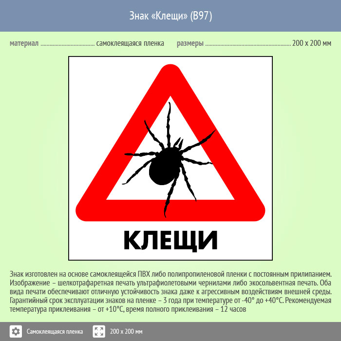 Знак «Клещи», B97 (пленка, 300х300 мм) в Химках купить