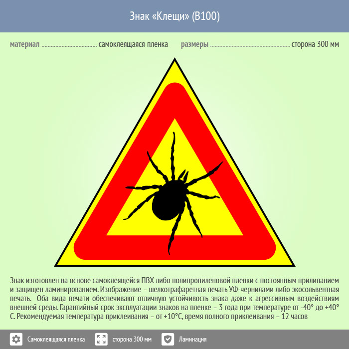 Знак «Опасно! Клещи», B100 (пленка c ламинированием, сторона 200 мм) в Химках купить