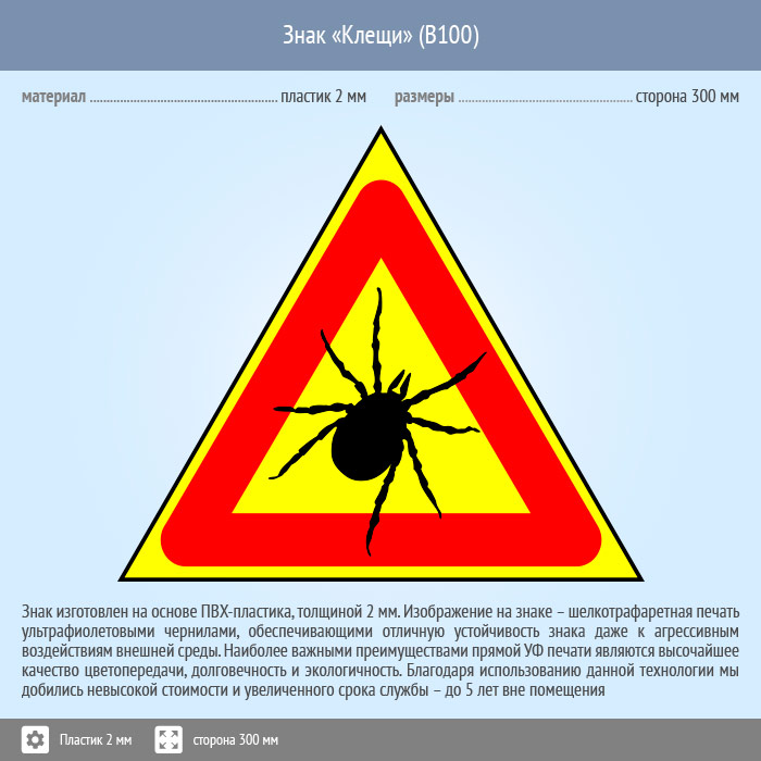 Знак «Опасно! Клещи», B100 (пластик, сторона 200 мм) в Химках купить