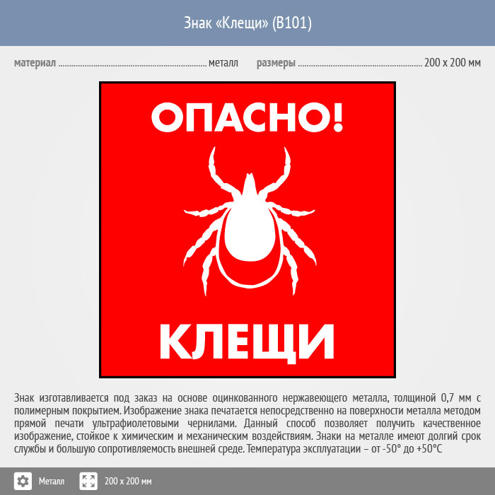 Знак «Опасно! Клещи», B101 (металл, 200х200 мм) в Химках купить